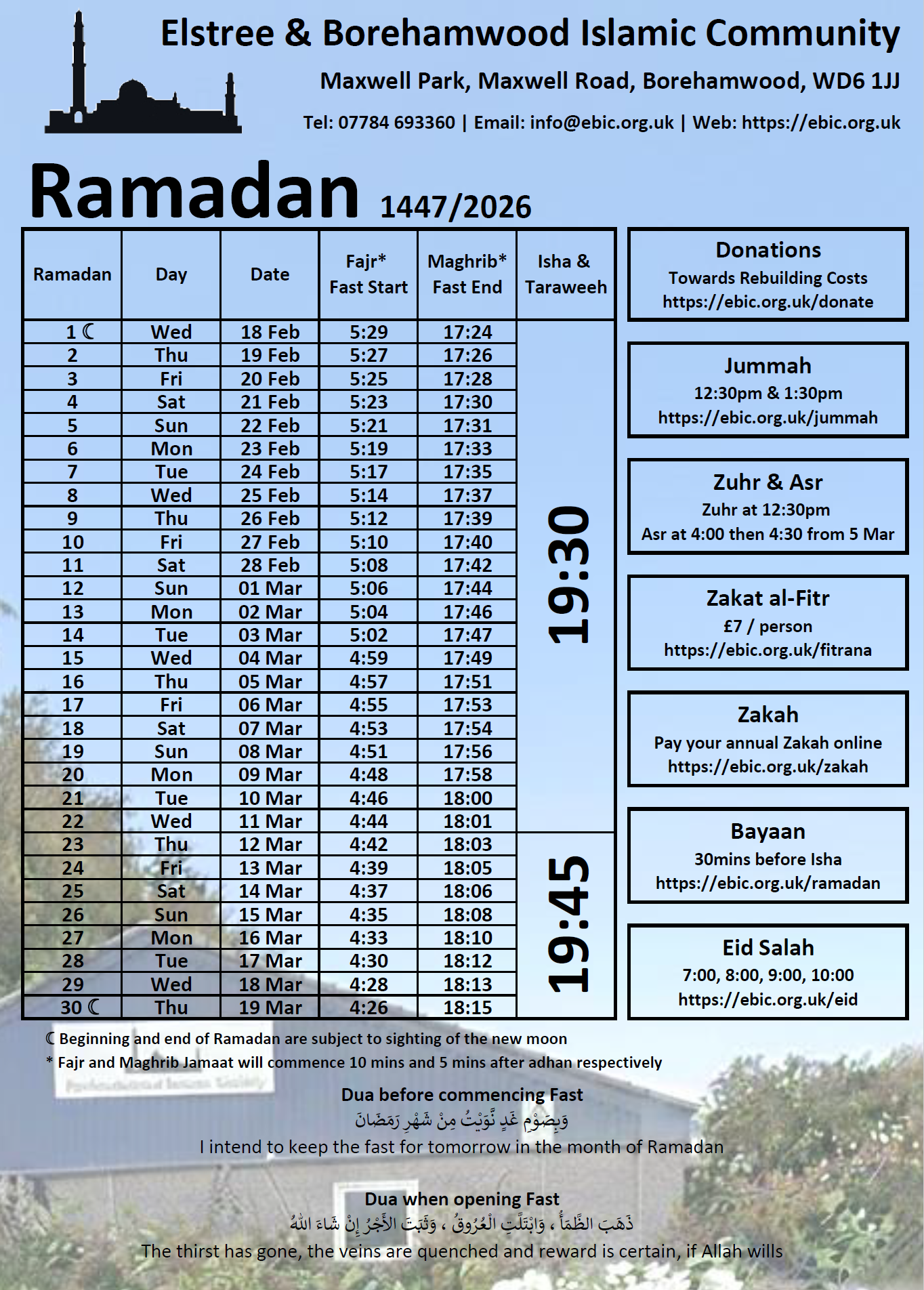 | Jummah | 12:30 pm | 1:30 pm | |